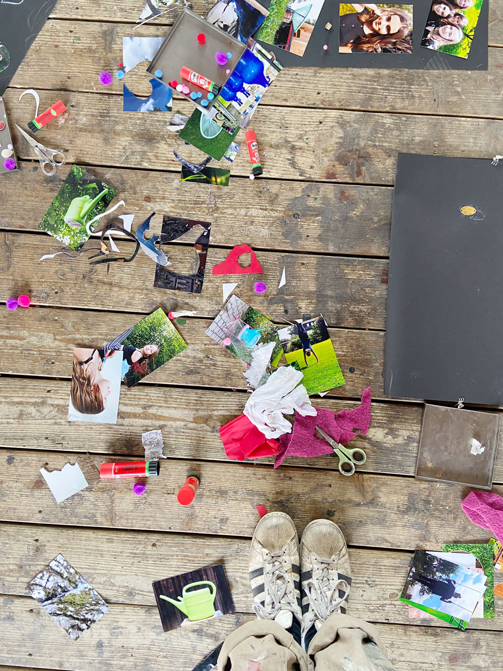 Hier geht es um das Porträt. Um warm zu werden und eine Inspirationsquelle zu finden, erstellen wir am ersten Tag eine Collage, die uns dann in den nächsten Tagen als Vorlage gilt.